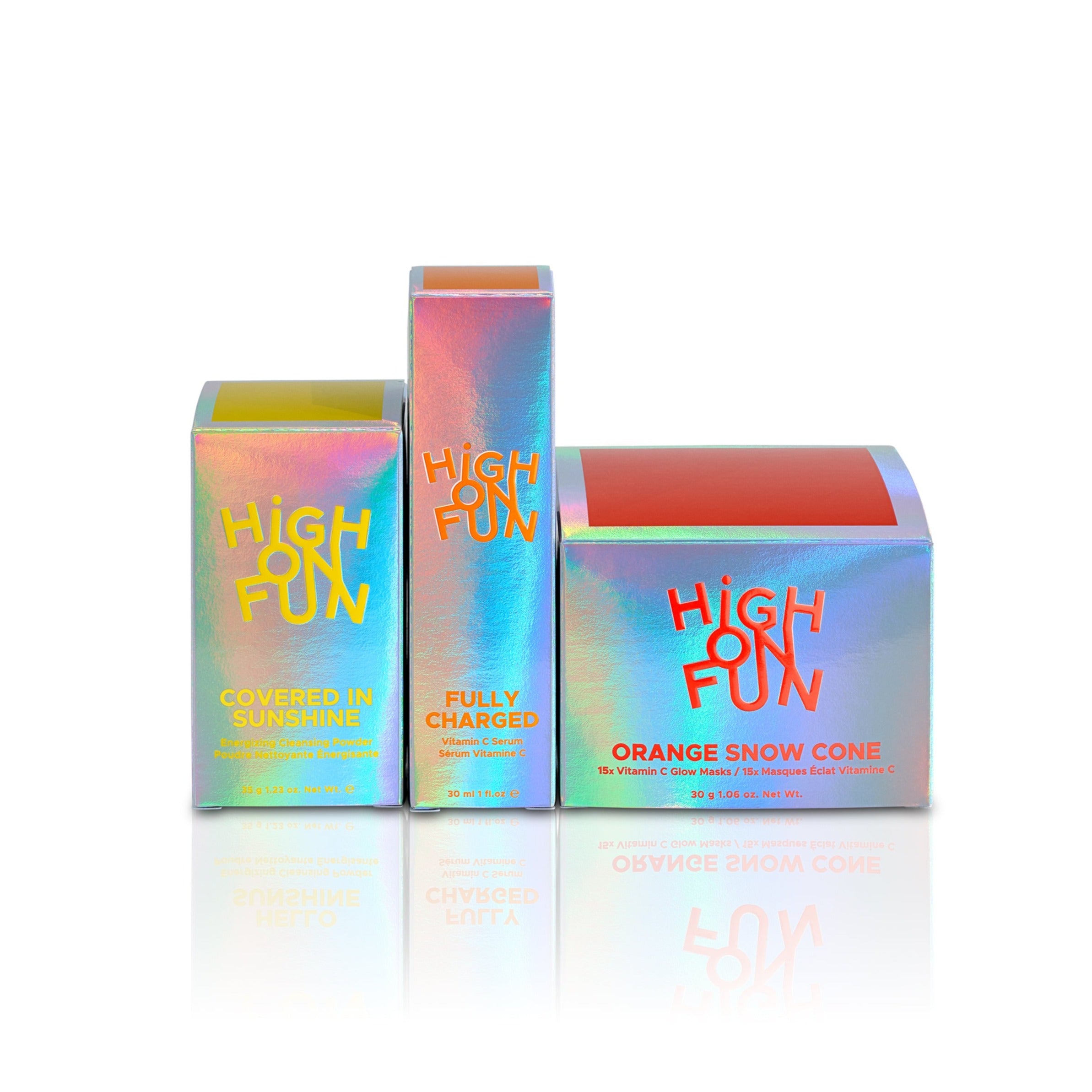 Commencer la routine en nettoyant ta peau avec Covered In Sunshine, notre poudre nettoyante énergisante qui se transforme en mousse onctueuse au contact de l’eau - enrichie en curcuma et exfoliants doux, parfaite pour réveiller les teints ternes. Une à deux fois par semaine, enchaîner avec Orange Snow Cone, un masque texture sorbet à la vitamine C à appliquer sur peau propre et sèche pendant 5 à 10 minutes avant de rincer. Terminer avec quelques gouttes de Fully Charged, notre sérum illuminateur à la vitamine C qui lisse, illumine et protège l’éclat toute la journée. À utiliser matin ou soir… ou les deux !